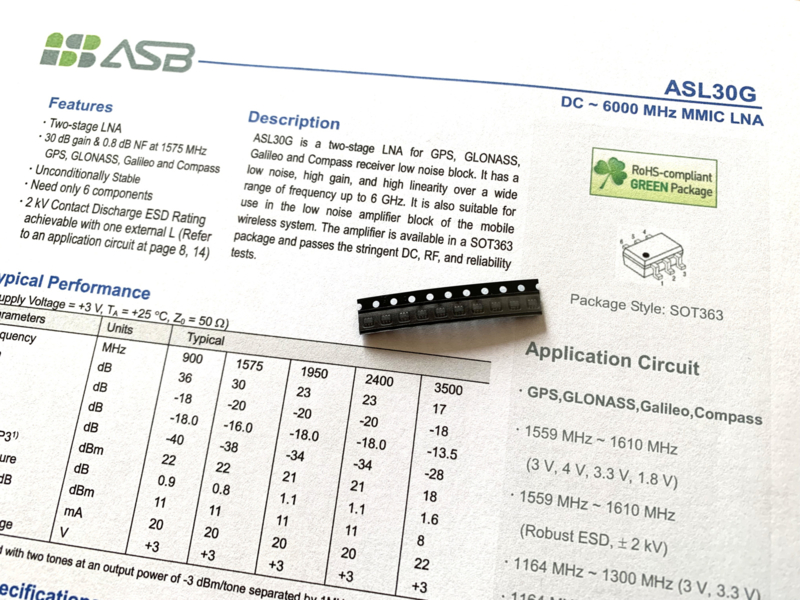 - MMIC DC 6GHz 30dB Gain at 1575MHz, SOT-363